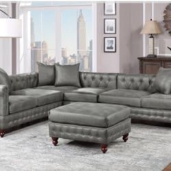 Gray Faux Leather Sectional Sofa With Ottoman $849Los Angeles, CA
