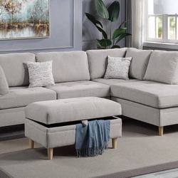 Brand New Mushroom 3pc Reversible Sectional Sofa With Storage Ottoman $949Los Angeles, CA