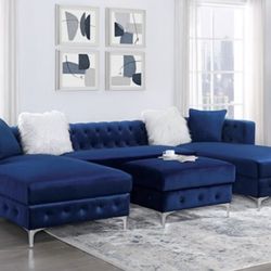 Brand New Large Glam Royal Blue Velvet U Shape Sectional With Free Pillows And Ottoman $2,000San Fernando, CA