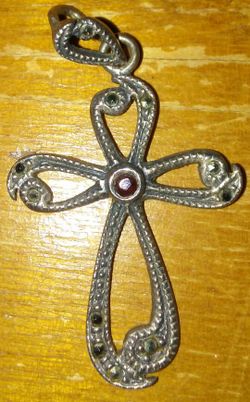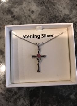 Cross with painted rose sterling silver pendant 45.7 cm ... necklace 18" inches $30$30Palmdale, CA