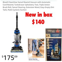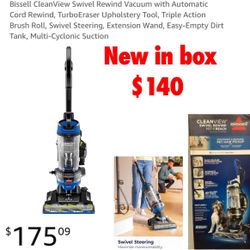 New in box Bissell CleanView Swivel Rewind Pet Reach Vacuum Cleaner, with Quick Release Wand, Swivel Steering and Automatic Cord Rewind $140 Firm no l$140Palmdale, CA