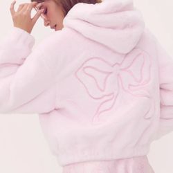 VS PINK × LoveShackFancy Faux-Fur Cropped Bomber Jacket Bow Back$200Quartz Hill, CA