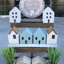 Home Decor Tabletop Fireplace Stocking Holder Farmhouse Signs / Wood Houses And Plants Bundle Of 11$85Quartz Hill, CA