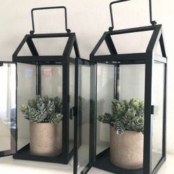 Home Decor Tabletop 10” Tall Metal Frame Lanterns With Plants - Set Of 2$45Palmdale, CA