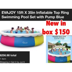 New in box 15x35in inflatable Top pool with pump set $150 firm cash only east Palmdale off 47th & R8 $150Palmdale, CA