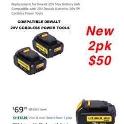 New 2 pk Replacement for Dewalt 20V Max Battery 6Ah Compatible with 20V Dewalt Batteries 20V XR Cordless Power Tools $50$50Palmdale, CA