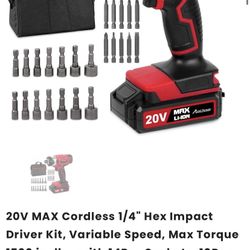 Impact Driver Kit, 1590 in-lbs 20V MAX Cordless 1/4 Inch Hex Impact Drill, Variable Speed, with 14 Sockets, 10 Driver Bits and Tool Bag, Avid Power$50Los Angeles, CA