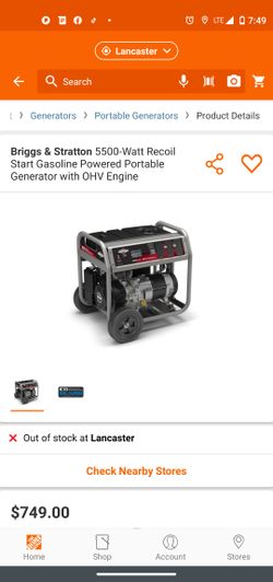 Briggs & Stratton 5500-Watt Recoil Start Gasoline Powered Portable Generator with OHV Engine$680Rosamond, CA