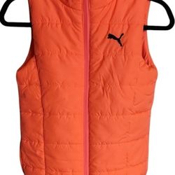 Girls Puma Quilted Puffer Vest Neon Pink/Salmon Full Zip, Pockets, and Insulated