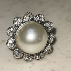 Silvertone White Bead Rhinestone Daisy Flower Ring ~ Size 8$5Palmdale, CA
