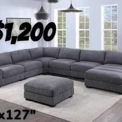 New 127x164x66 Corduroy Sectional Couch With Ottoman $1,600Castaic, CA
