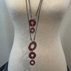 Long 2-layer Silver Necklace With Red Accents$13Irwindale, CA