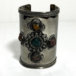 Chunky Silver Plated Cuff With Stones, Fashion Boho Unique Artisan Made In India With Jewelry Bag Included , 8 Available $ 12 Each$12Quartz Hill, CA