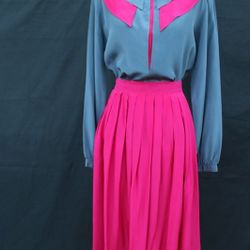 Lovely Vintage 1980s European Fushia and Gray Silk Top and Skirt$151Juniper Hills, CA
