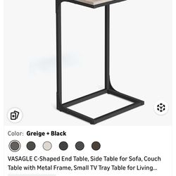 VASAGLE C-Shaped End Table, Side Table for Sofa, Couch Table with Metal Frame, Small TV Tray Table for Living Room, Bedroom, Greige and Black ULET353B$15Palmdale, CA