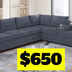 4-Piece Sectional Set W/ Ottoman One-Arm Loveseat x 2 + Corner Wedge + Cocktail Ottoman + Console W/USB & Cup Holders Color: Dark Gray. $799Lancaster, CA