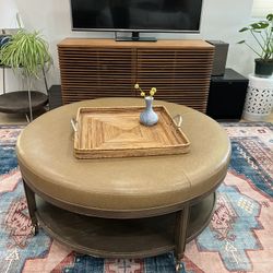 Upscale Round Leather Coffee Table Ottoman With Shelf And Casters (Michael Weiss)$500Irwindale, CA