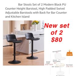 New Bar Stools Set of 2 Modern Black PU Counter Height Barstool, High Padded Swivel Adjustable Barstools with Back for Bar Counter $80$80Palmdale, CA
