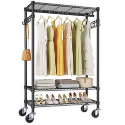 Heavy Duty Garment Rack with Lockable Wheels, Portable Rolling Closet with Adjustable Shelves & Hanging Rod & Side Hooks, Compact Space-Saving Storage$45Lancaster, CA