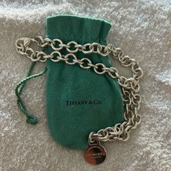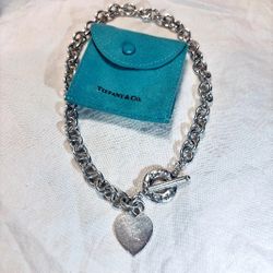 Tiffany & Co. Sterling Silver Heart Clasp Round Link Choker / Chain 16inches$300Palmdale, CA