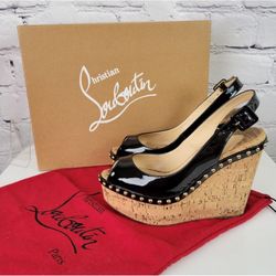 CHRISTIAN LOUBOUTIN Monico 100 Patent Open Toe Slingback Cork Wedges$200Canyon Country, CA