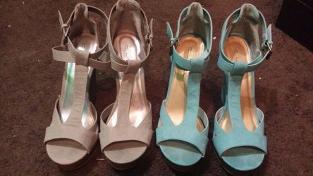 Blue and gray wedge heels$20Palmdale, CA