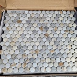 Lamora Marble Coastal Blue 11 in. x 13 in. Glazed Ceramic Penny Round Mosaic Tile $35Pasadena, CA