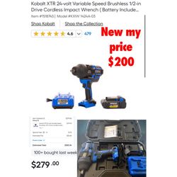 New Kobalt XTR 24-volt Variable Speed Brushless 1/2-in Drive Cordless Impact Wrench ( Battery Included ) Item #1518745 - $200 firm cash only pick up o$200Palmdale, CA