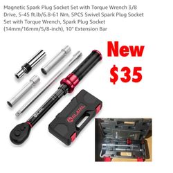New Magnetic Spark Plug Socket Set with Torque Wrench 3/8 Drive, 5-45 https://offerup.com/redirect/?o=ZnQubGIvNi44LTYx Nm, 5PCS Swivel Spark Plug Sock$35Palmdale, CA