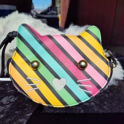 Luv Betsy Johnson Zippered Multi-Colored Striped Cat Face Wristlet Purse Wallet$12Quartz Hill, CA