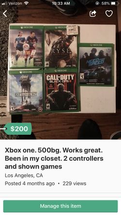 Xbox one with games and controllers. Works great. Low hours.$200Lake View Terrace, CA