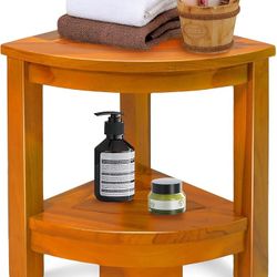 New In Box 16.5" Teak Corner Shower Bench with Storage Shelf for Shaving Legs, Teak Shower Stool for Inside Shower, Waterproof Shower Foot Rest, Showe$50Dublin, CA