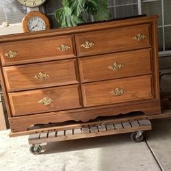 Dresser With Mirror Not Shown Is 51 In Wide 31in Tall 17 In Deep Has 6 Drawers Maple Finish Gold Knops$85San Jose, CA