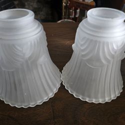 2 VINTAGE Art Deco Ribbed Glass Drape Globe Satin Frosted Shades Scalloped Edge$20San Jose, CA