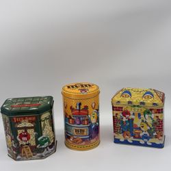 M&M's Christmas tin canisters, featuring decorative designs like a "Tree Shop" and a "Toys" store, which were produced as limited edition coll$28Piedmont, CA