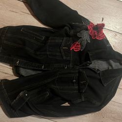 Black Denim Jacket W Red Roses Women’s Size M$30San Leandro, CA