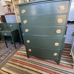 Four Piece Queen Bedroom Set With Green Bed Frame Dresser Mirror And Niight Stand$499Hayward, CA