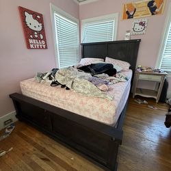 Queen size solid wood bed frame and mattress$325Oakland, CA