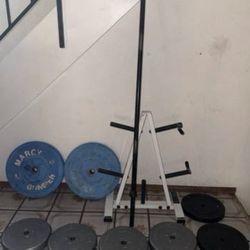 Gym Set: 180lbs Weight Plates, Weight Tree, And Barbell $80Newark, CA