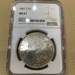 1881 S Morgan Silver Dollar NGC MS63$115San Francisco, CA