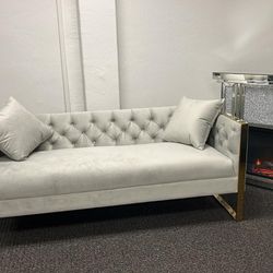 EastbrookGrey 2-Piece Velvet Upholstered Tufted Sofa Set