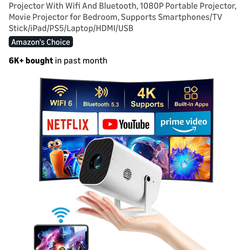 【Built-in APPS & Electric Focusing & 210° Rotation】Mini Projector With Wifi And Bluetooth, 1080P Portable Projector, Movie Projector for Bedroom, Supp$40Lynwood, CA