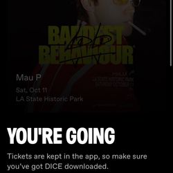 Mau P LA Historic Park Saturday 10/11$240Chino Hills, CA