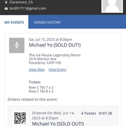 4 Michael Yo Tickets-20 Each$20Claremont, CA