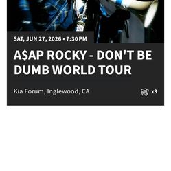 Don’t Be Dumb Tour ASAP ROCKY 6/27/26 Inglewood $580Huntington Park, CA