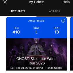 Ghost Skeletour Honda Center Tickets Heavy Metal SATURDAY 9pm$139Brea, CA