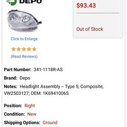 Jetta Volkswagen Headlights (Brand new) $90Los Angeles, CA