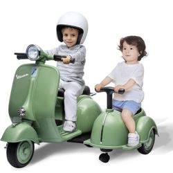 Kids Electric Ride On Motorcycle with Sidecar, Licensed Vespa Retro Boys Girls 2 Seater 4 Wheels Ride On Scooter Toy Vehicle, Music Player$70El Monte, CA