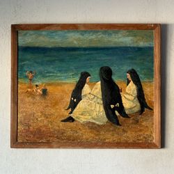 OLD ANTIQUE RELIGIOUS CATHOLIC NUN MODERN BEACH LANDSCAPE OIL PAINTING JESUS 1940s$495Pasadena, CA