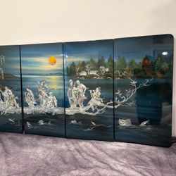 4-Panel Chinese Lacquer Wall Screen w/ Mother-of-Pearl Inlay – Immortals Scene $850Placentia, CA
